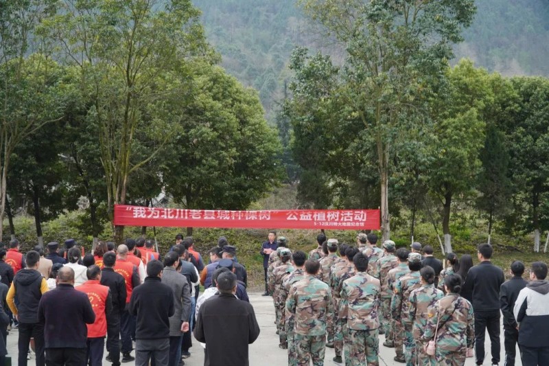在第45个植树节及5·12汶川特大地震十五周年即将到来之际,中共绵阳飞行职业学院支部、共青团绵阳飞行职业学院委员会、绵阳飞行职业学院思政部组织师生党员、入党积极分子及优秀团员,联合5.12汶川特大地震纪念馆,与曲山派出所、曲山卫生院、曲山镇政府、信用联社曲山分社、信用联社坝底分社及来自河南焦作、河南周口、贵州赤水等地的社会各界爱心朋友们,齐聚北川老县城地震遗址,开启“特别党日”活动——“我为北川老县城种棵树”公益植树。