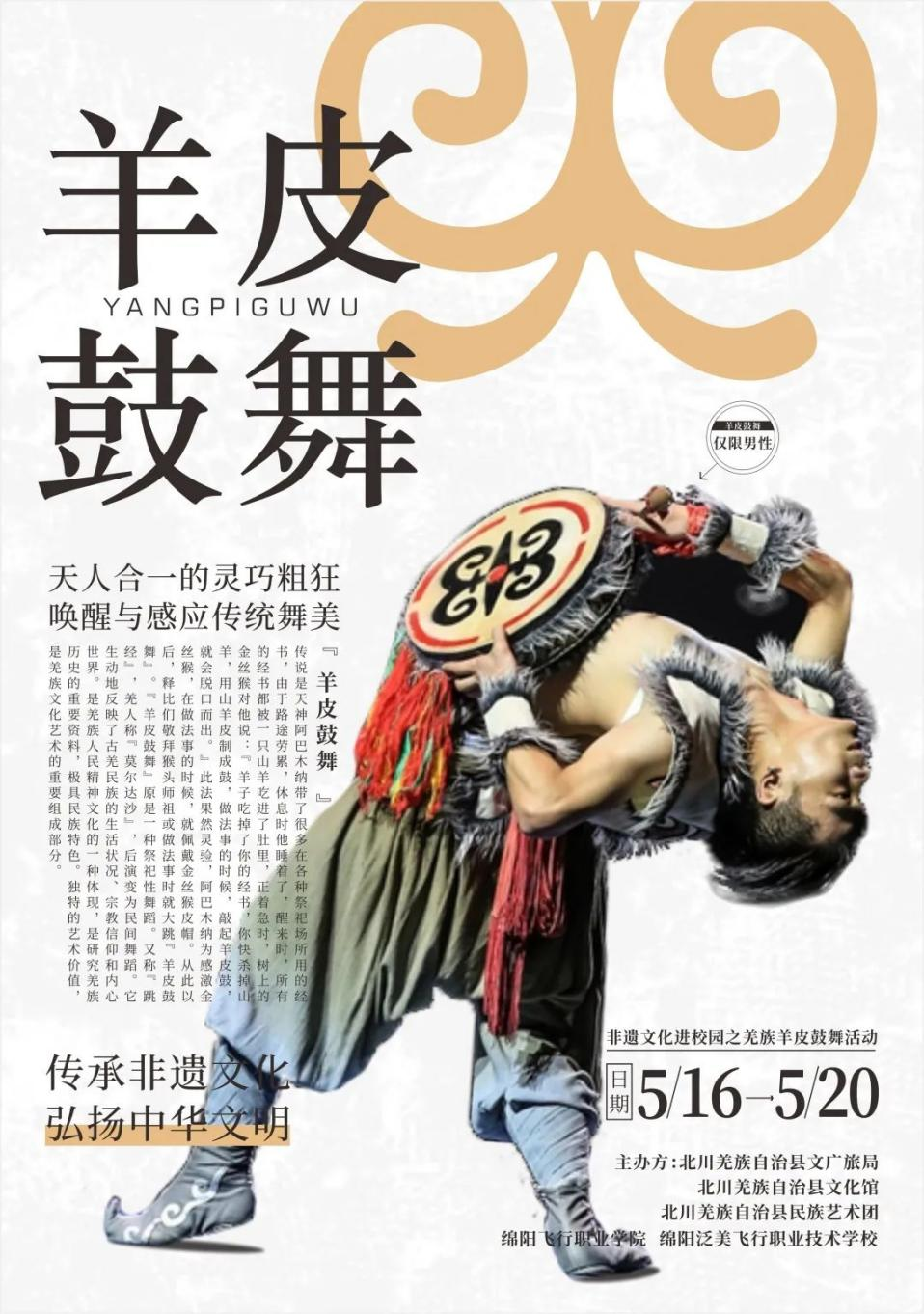 非遗传承进校园,绵飞学子跳起悠久神秘的古羌羊皮鼓舞