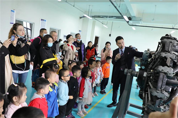 参观飞机的大心脏——听马平平老师讲解飞机发动机。