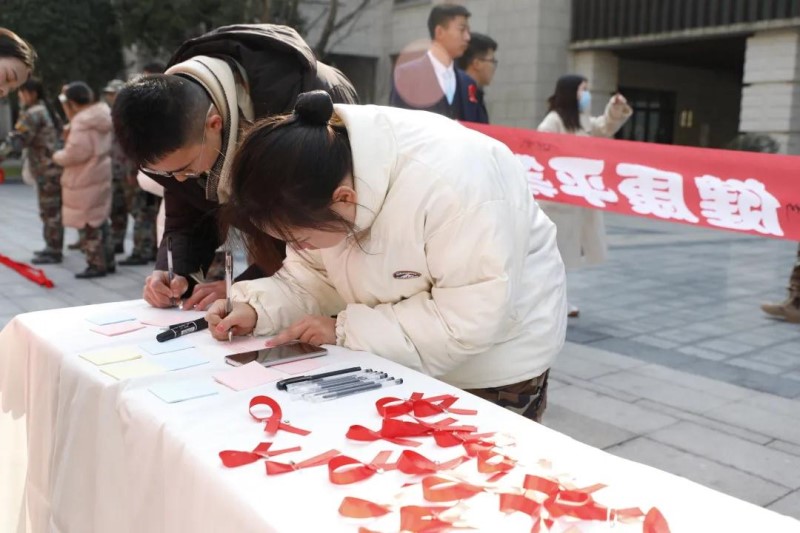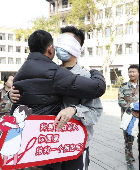 ????多一份理解与关怀,少一份歧视与冷漠。当防艾志愿者扮成艾滋病患者站在活动现场时,许多同学都送上自己的拥抱与祝福,并在防艾横幅上联合签名,承诺用爱与善意去对待每一位艾滋病患者。“爱的抱抱”,知艾无碍,健康平等。
