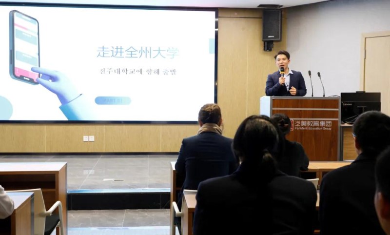 ????双方就绵阳飞行职业学院与韩国全州大学共建海外本科2+2出国留学项目展开了深入的交流与讨论。随后,泛美集团本部国际交流中心主任、四川西南航空职业学院国际学院院长王圆圆、国际学院韩语教师刘扬为我院学生详细介绍了此次留学项目,学生兴趣高昂,踊跃积极提问,整体氛围活跃融洽。