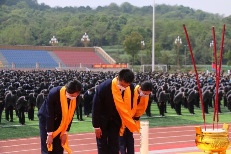 ????4月2日下午,清明节来临之际,绵阳飞行职业学院、绵阳泛美飞行职业技术学校在运动场举行“祭祀祖先、缅怀先烈”清明祭祖仪式。