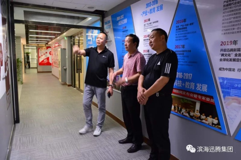 ????座谈会前,李选华副院长在滨海迅腾科技集团董事长邵荣强等陪同下参观了该公司党建带群建长廊、企业发展历程长廊、企业荣誉展示厅等。
