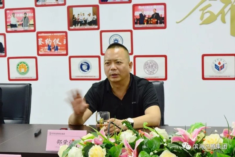 ????座谈会上,邵荣强董事长对李选华副院长表示热烈的欢迎,并讲述了滨海迅腾科技集团多年深耕产教融合校企合作领域,详细介绍了公司在“产业+专业”产业学院建设中形成的“十共”、“七融”、“八一流”、“十一基于”模式,以及在此模式下的产业学院建设方案和成果。