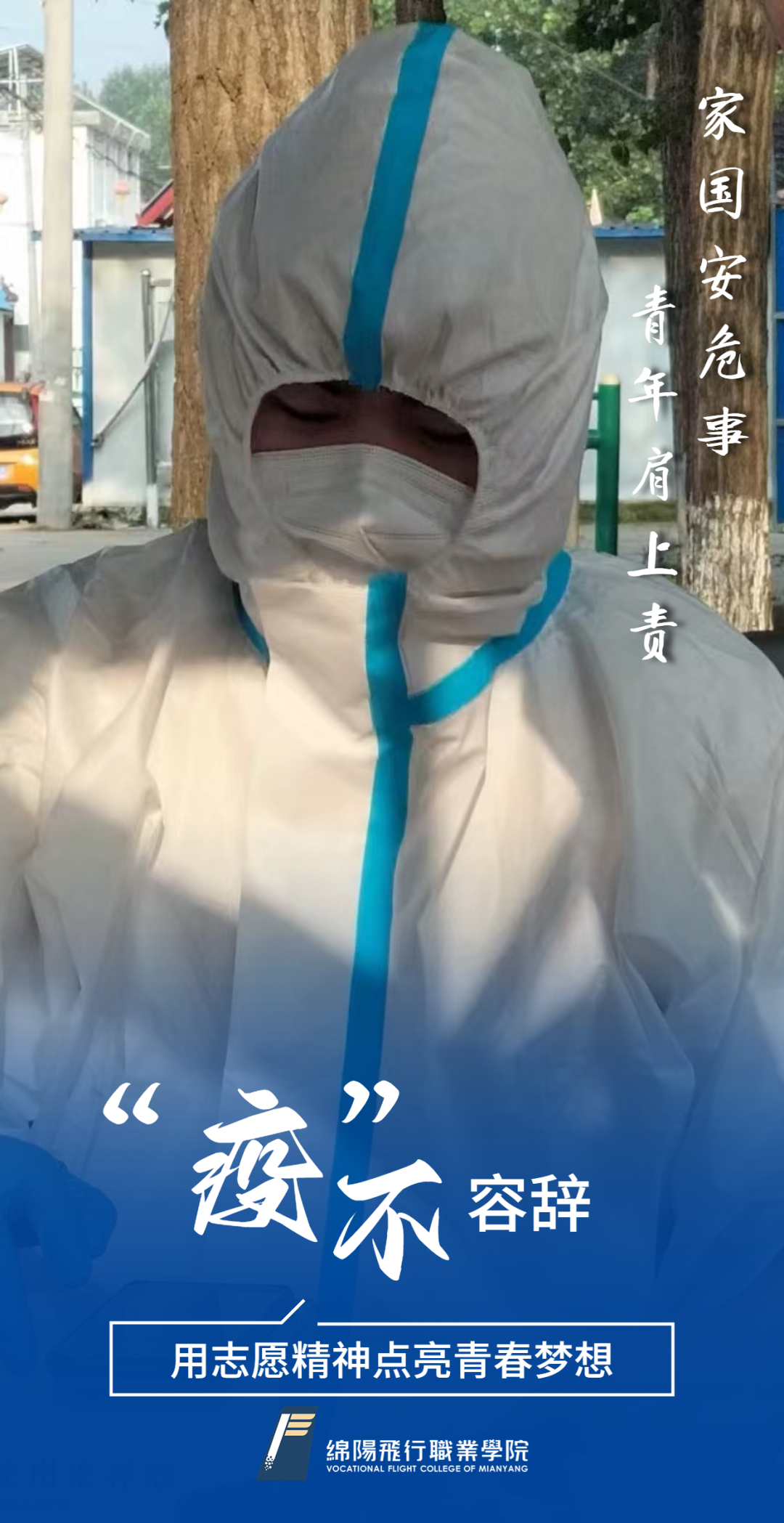防护服一穿就是八小时!绵飞院优秀学子田玉龙获县委县政府表扬!