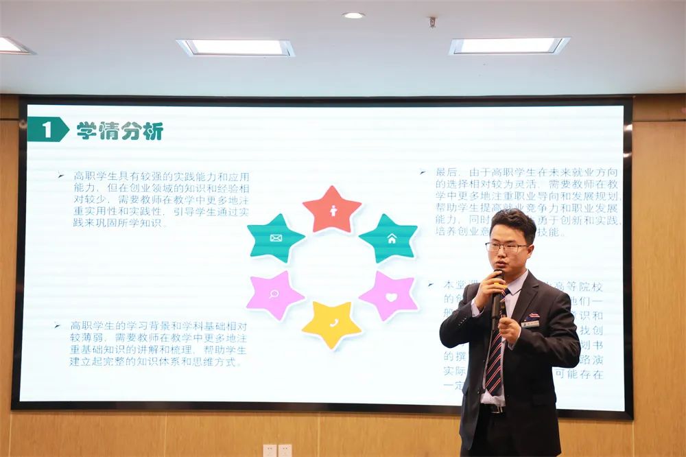 ????赛后,副院长李选华对本次比赛进行了总结点评,肯定了参赛教师们在比赛中的优异表现,对关于说课环节提出意见和建议:说课前期要分析教材、分析学情,依据课程标准合理制定教学目标,即知识与能力目标、过程与方法目标、情感态度与思政目标,注重之间的逻辑关系。然后根据目标,根据教学理论、学习理论设计导入和过程教学环节,这个环节一定要紧扣课程目标。希望我们的老师们一定要认真把握,争取获得好的成绩。
