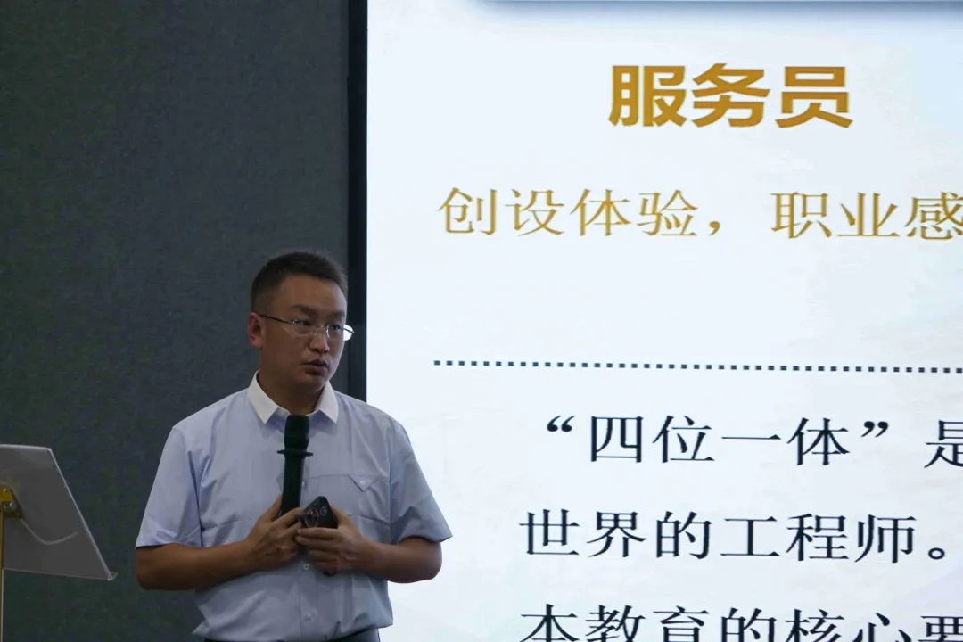 ????梁国辉副院长在讲座中细致分析了职业院校学生特质,从泛美教育“四位一体”(服务员、 战友、导师、家人)的多重角色定位,以及“三张标签”(标准的军人、现代绅士与淑女、高度职业化的民航员工)育人目标角度,重温“用心去工作,用爱去教育”的泛美教师誓词,分享了“教育即服务”的教育心得:打破壁垒,关注成长,以“留住一个学生,幸福一个家庭”为出发点,以“不放弃每一个学生”为基本要求,做好学校教育各个环节的工作。