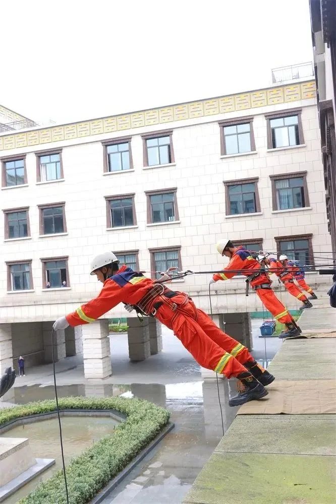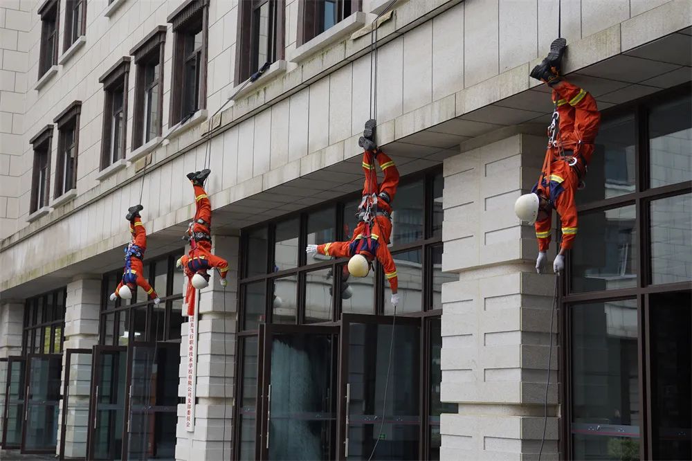 ????与此同时,学院消防应急救援技术专业的同学驾驶消防车驶入龙堡,进行了水炮车高空救火、楼宇倒悬索降技能演练。同学们一字间隔排开,从2楼倒悬索降,“蜘蛛侠”们动作干净利落,一气呵成,博得围观同学们的齐声喝彩和热烈掌声。