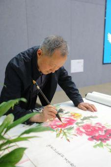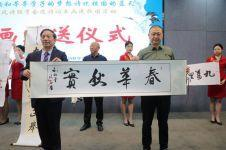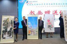 在禹风诗联学会张强、李加碧现场创作书画间隙,与会嘉宾、各县市区诗词、文化学会向绵阳飞行职业学院赠送书籍及书法、美术作品,绵阳飞行职业学院副院长李选华、梁国辉向参加活动的各位嘉宾赠送学院文创产品。