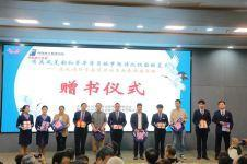 △?北川政协文史委主任陈远迁、副主任陈亚西、安州诗词学会主席李涌、北川文联主席朱静、北川当时研究室副主任谢雁萍、羌族作家张成绪为绵阳飞行职业学院赠书