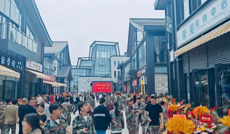打造通航小镇新地标,焕发民族生活新风潮。4月24日,北川沙朗恰民谣街开街仪式顺利举行,四川泛美教育集团董事、副总裁、人力资源部总裁、北川区域总裁、绵阳飞行职业学院院长李玉龙宣布沙朗恰民谣街一期拆围正式开街。拆除围挡,鸣炮开街,标志着“校在城中、城校一体,产教融合,互联互通”的“大美羌城”——泛美航空科技城”项目正式迈入新阶段,一所集航空与民族艺术融为一体,怀抱开放式办大学在内的特色多元化国潮街区新空间以崭新格调登场。