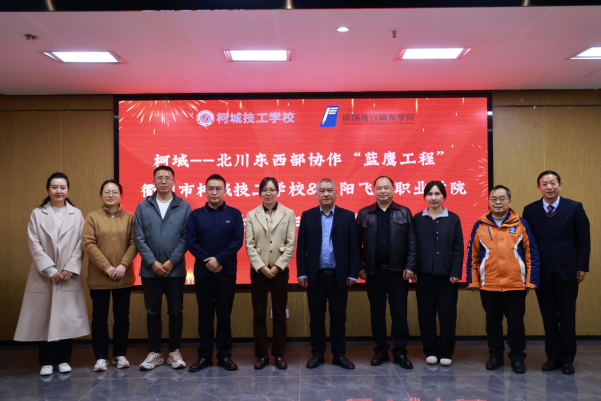 2025年11月13日下午,柯城—北川东西部协作“蓝鹰工程”校校协作签约仪式在绵阳飞行职业学院行政楼417会议室隆重举行,正式见证浙江衢州市柯城技工学校与绵阳飞行职业学院开启深度合作新征程。