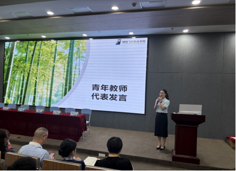 青年教师代表方丹则以“心怀敬畏,向阳生长”表达心声。她坦言,入职半年来,在课程重难点突破、学生管理等方面面临挑战:“面对高职学生的实践需求,有时会陷入‘理论讲得多,实操练得少’的困境。此次结对帮扶就像‘及时雨’,让我们有了学习的标杆和方向。”她代表全体青年教师表态,将以“空杯心态”虚心求教,主动参与教研活动,争取早日实现“站稳讲台、备好课程、带好学生”的目标。