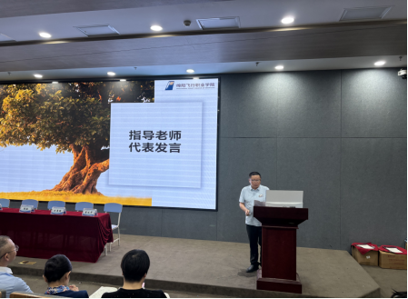 帮扶导师代表、代泽明副教授以“深耕教学守初心,传帮带教显担当”为题分享经验。他结合自身教学与教研经历,从课程设计、学情分析、技能实训三个维度,向在场教师传递实用教学方法:“在无人机专业教学中,要将行业案例融入课堂,让理论知识‘落地’;面对青年教师,我们不仅要传授‘怎么教’,更要引导‘为何教’,帮助他们树立教育情怀?!蓖?,他承诺全体导师将以“毫无保留、倾囊相授” 的态度履行职责,助力青年教师少走弯路、快速成长。